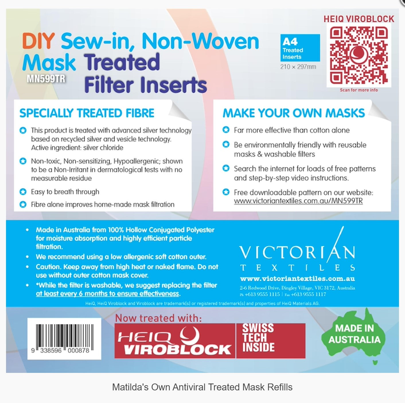 100% Made in Australia from Hollow Conjugated Polyester for moisture absorption and extremely effective particle filtration.